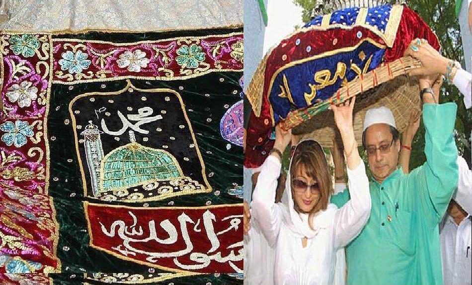Full Set of Darbar Sharif - (For Interior. Decoration of Darbar) & Upon The Holy Tomb This Umbrella Chadar Once climbs 3 ya 4 Month Keeps Climbing Until Someone New Climbed